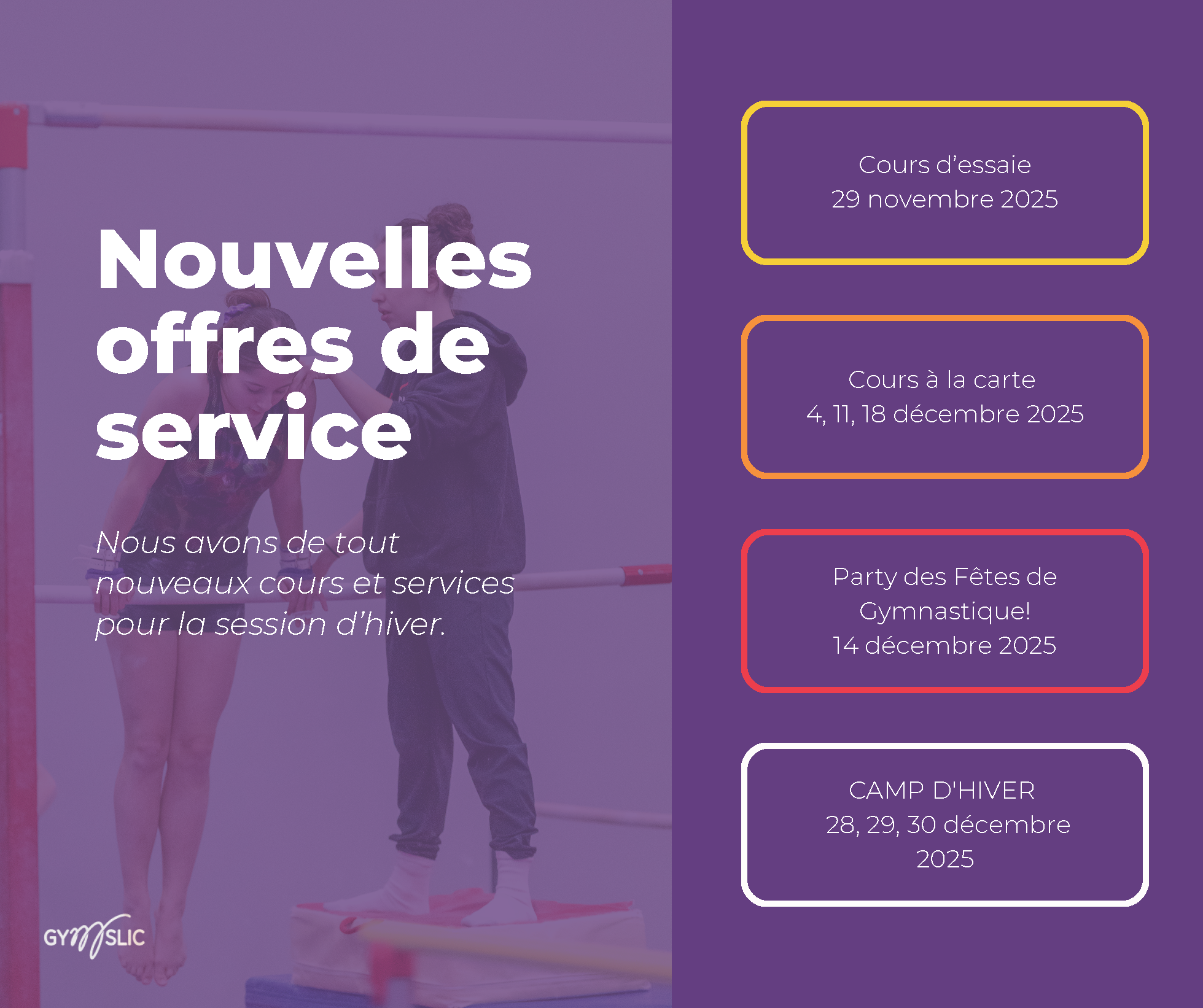 Le club Gymslic Saint-Laurent offre des cours de gymnastique dans les secteurs recréatifs et compétitifs dans le but d’initier les jeunes athlètes au sport.